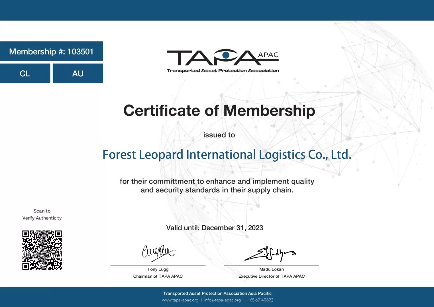 The TAPA Difference: Forest Leopard is a certified member of TAPA (Transported Asset Protection Association). This global standard ensures your high-value inventory is handled with "bank-grade" security: